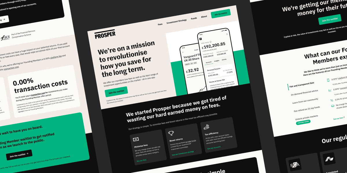 Prosper is a new financial services platform offering affordable investing and access to private markets, which aren’t normally available to everyday investors. They needed help designing their landing pages to explain their proposition to potential customers, and ultimately sign up members.